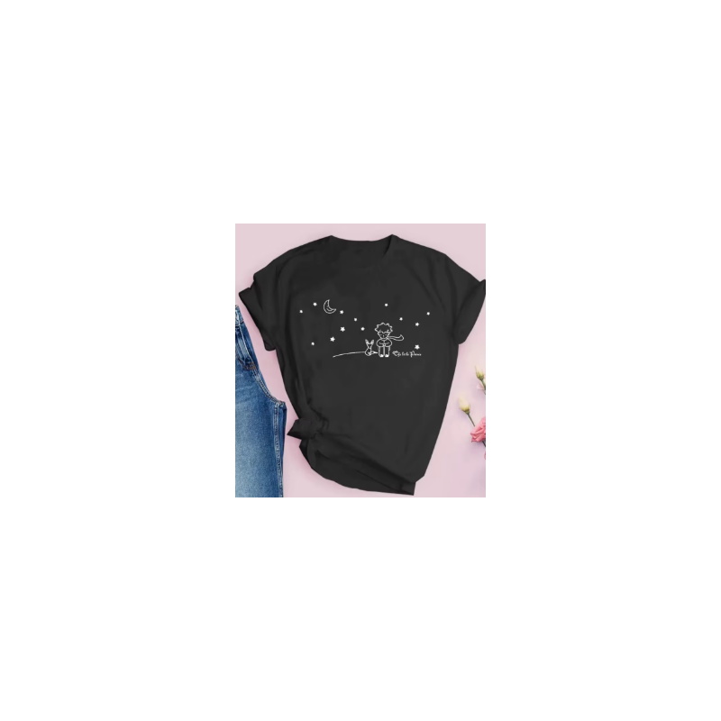 Camiseta negra L con estampado del Principito en blanco.